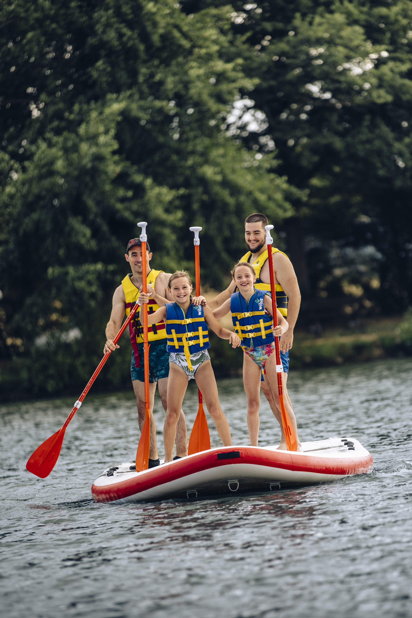 Sur ce paddle géant, vous pourrez explorer le Lac de la Tricherie en étant plusieurs sur la même embarcation. Sa capacité est de 4 à 10 personnes. Idéal pour partagez un moment en famille avec des plus petits !